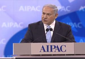 Netanyahu speaking at AIPAC 2014.